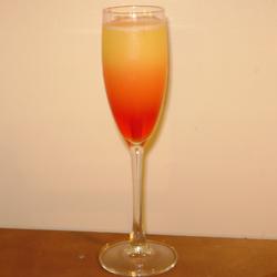 When added last, the grenadine will sink to the bottom and present a delightful gradient of colors that resemble a sunrise. Mix before consuming. A glass with an oval bottom (similar to a champagne flute) will render a more dramatic effect.